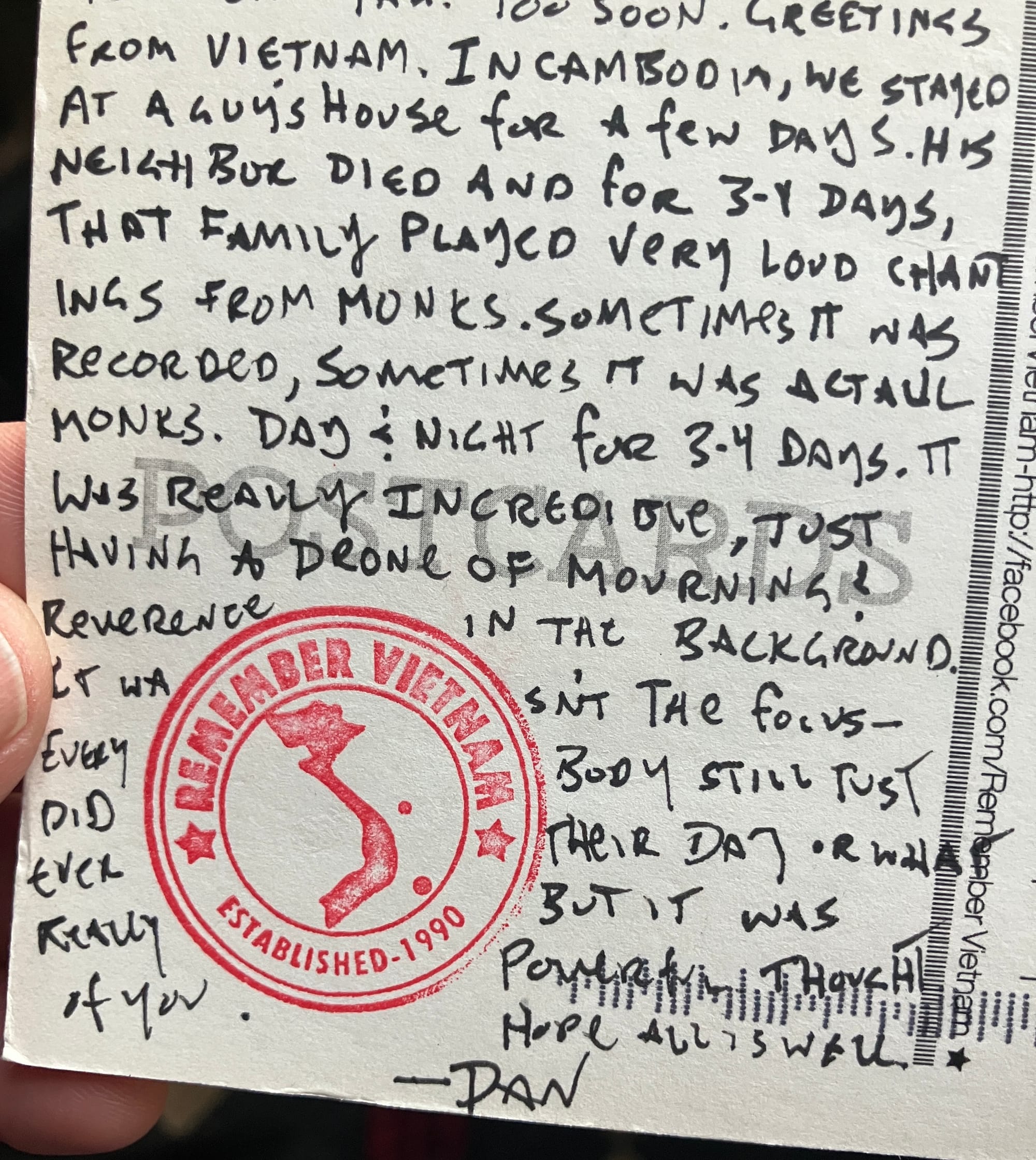 It’s not weird that I'm writing about it in these terms. It’s weird that we made it weird. Got this postcard from my friend Dan today (he said it was ok to put up). Maybe this says it all.